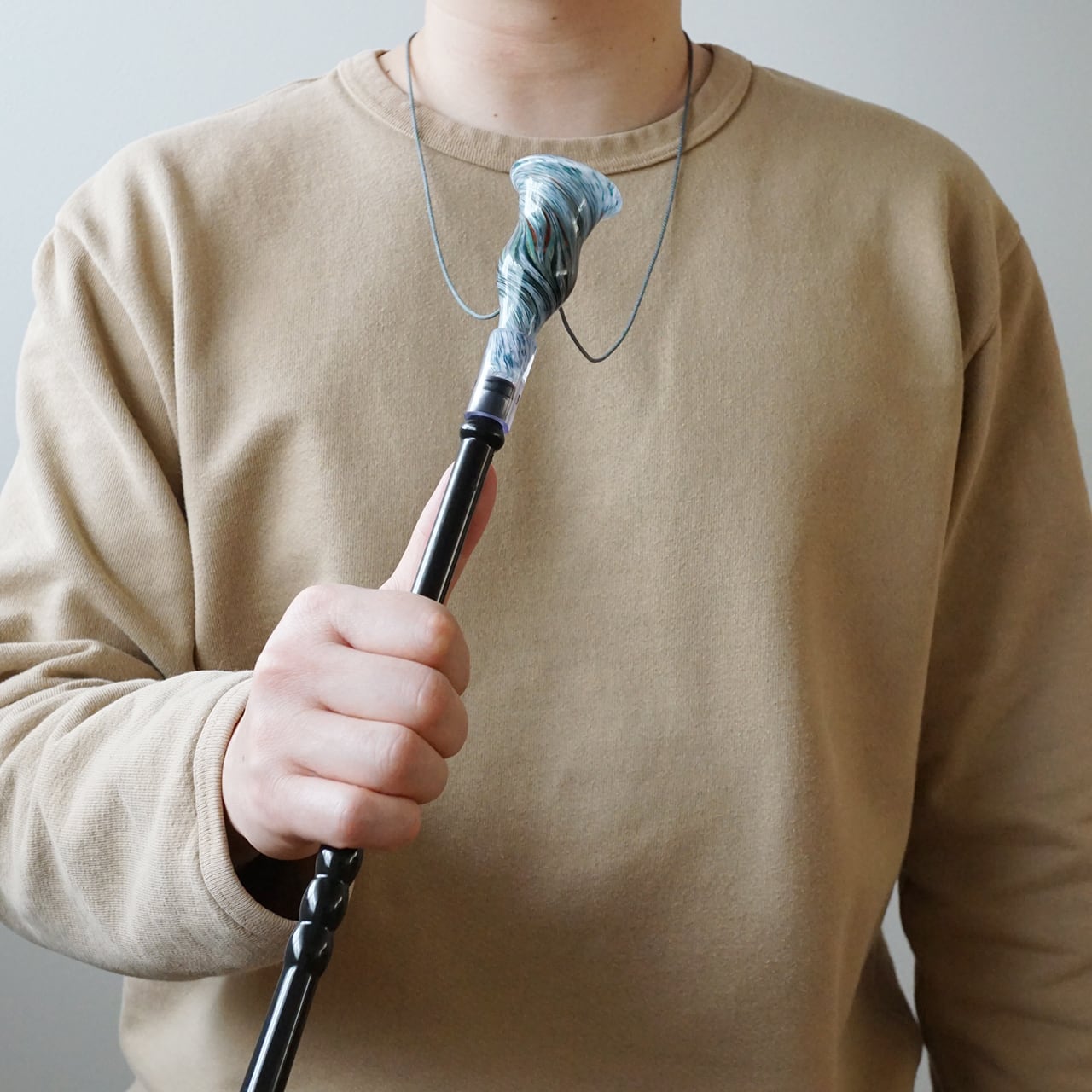 首にかけ、好きな長さに調整できます。