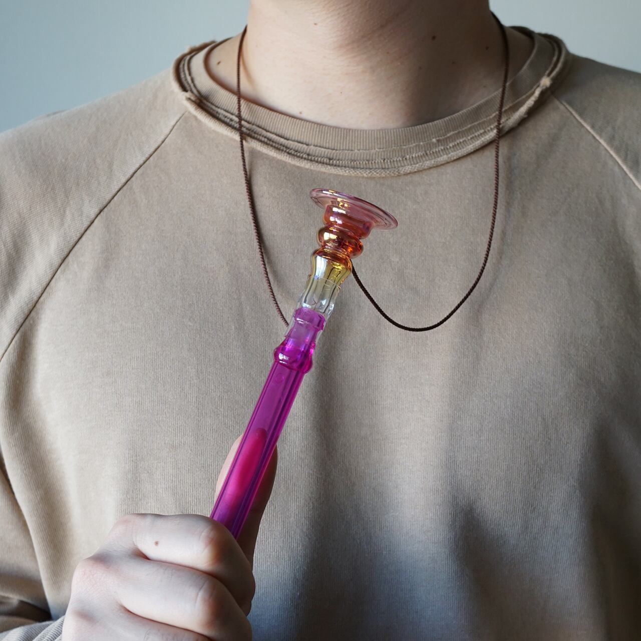 首にかけ、好きな長さに調整できます。