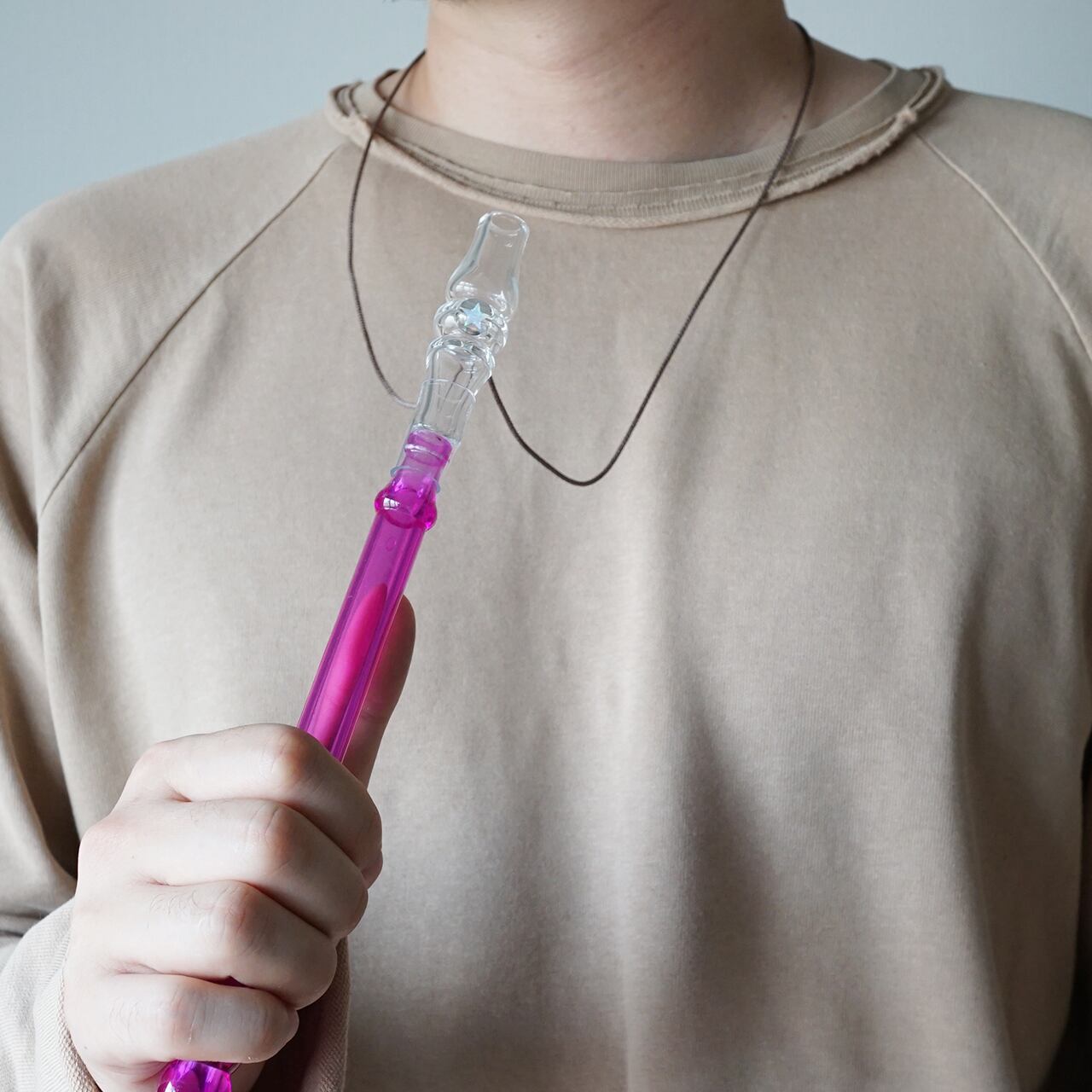 首にかけ、好きな長さに調整できます。