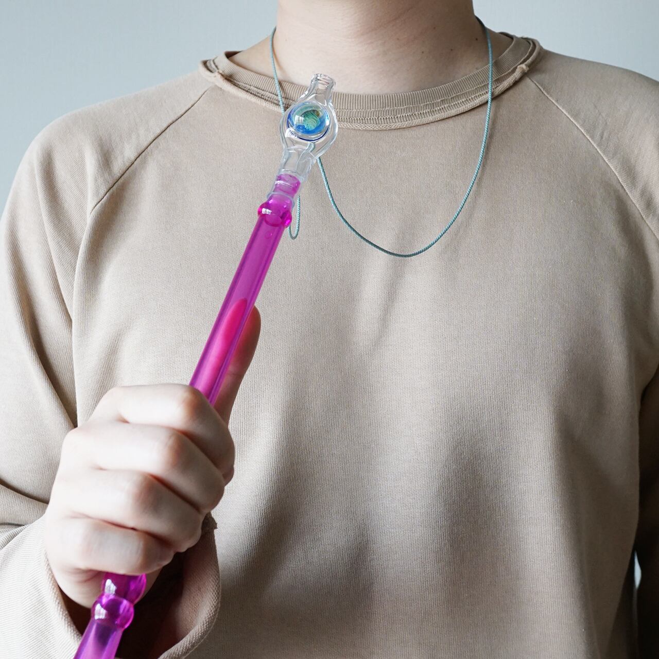 首にかけ、好きな長さに調整できます。