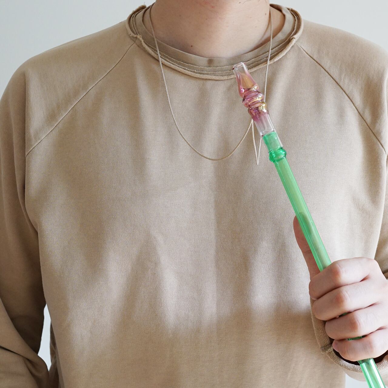 首にかけ、好きな長さに調整できます。